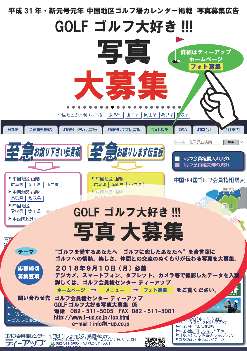 フォト募集-ゴル会員権ドットコム【ゴルフ会員権 広島県 島根県 鳥取県 岡山県】ゴルフ会員権センターティーアップまで!