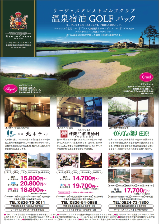 | "リージャスクレストゴルフクラブ"温泉宿泊ゴルフパック企画 |